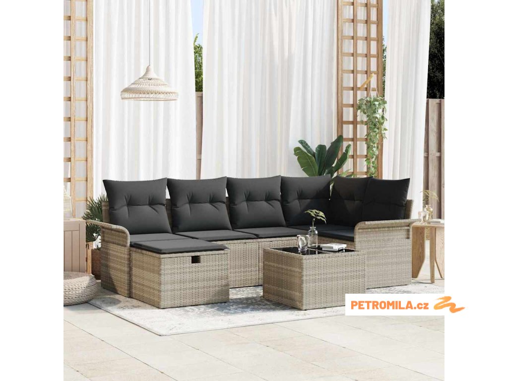 Sada zahradních pohovek s polštářem 7 pcs Světle šedá polyratan