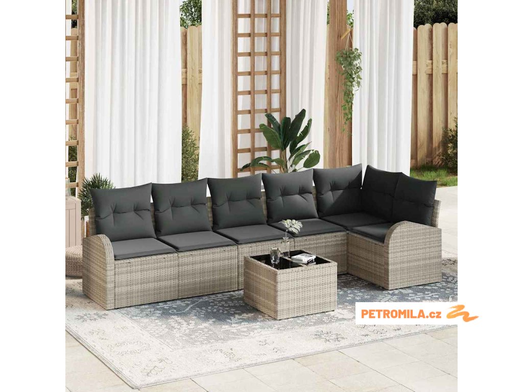 Sada zahradních pohovek s polštářem 7 pcs Světle šedá polyratan