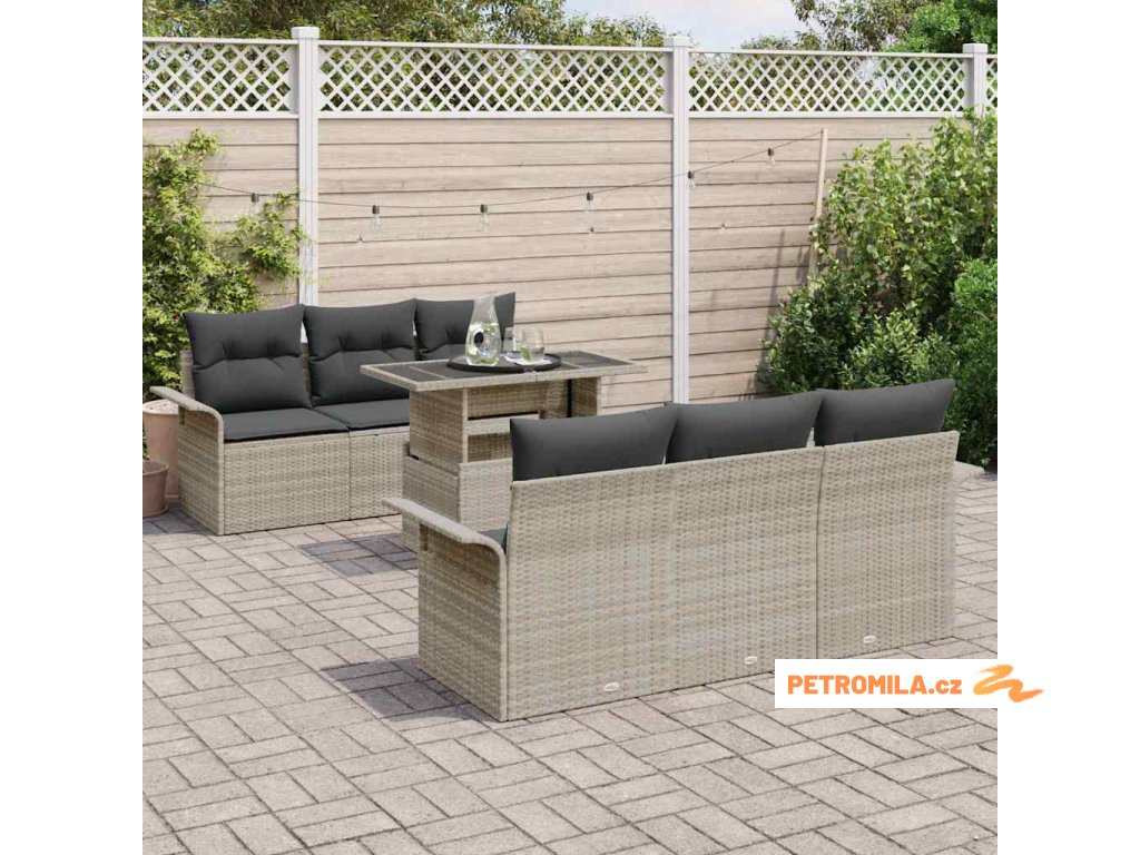 Sada zahradních pohovek s polštářem 7 pcs Světle šedá polyratan