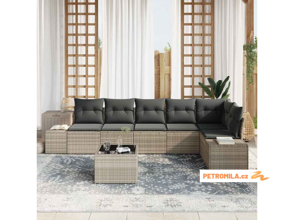 Sada zahradních pohovek s polštářem 7 pcs Světle šedá polyratan