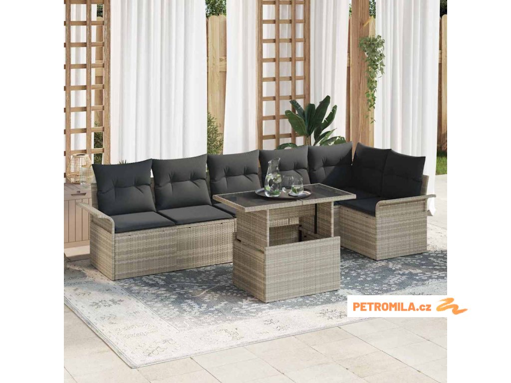 Sada zahradních pohovek s polštářem 7 pcs Světle šedá polyratan