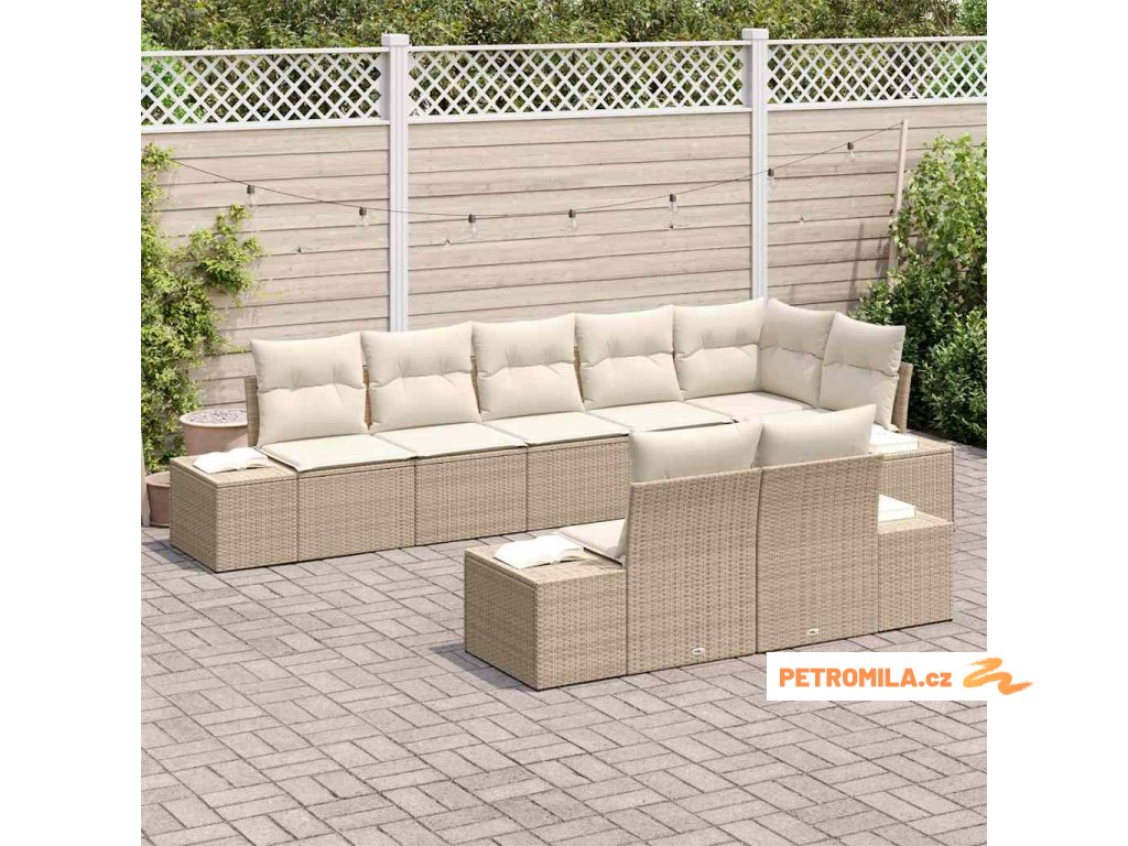 Sada zahradních pohovek s polštářem 8 pcs béžová a krémová