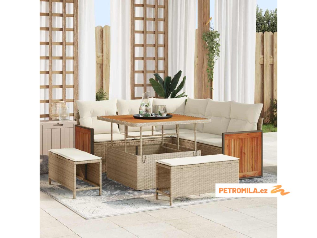 Sada zahradních pohovek s polštářem 8 pcs béžová a krémová