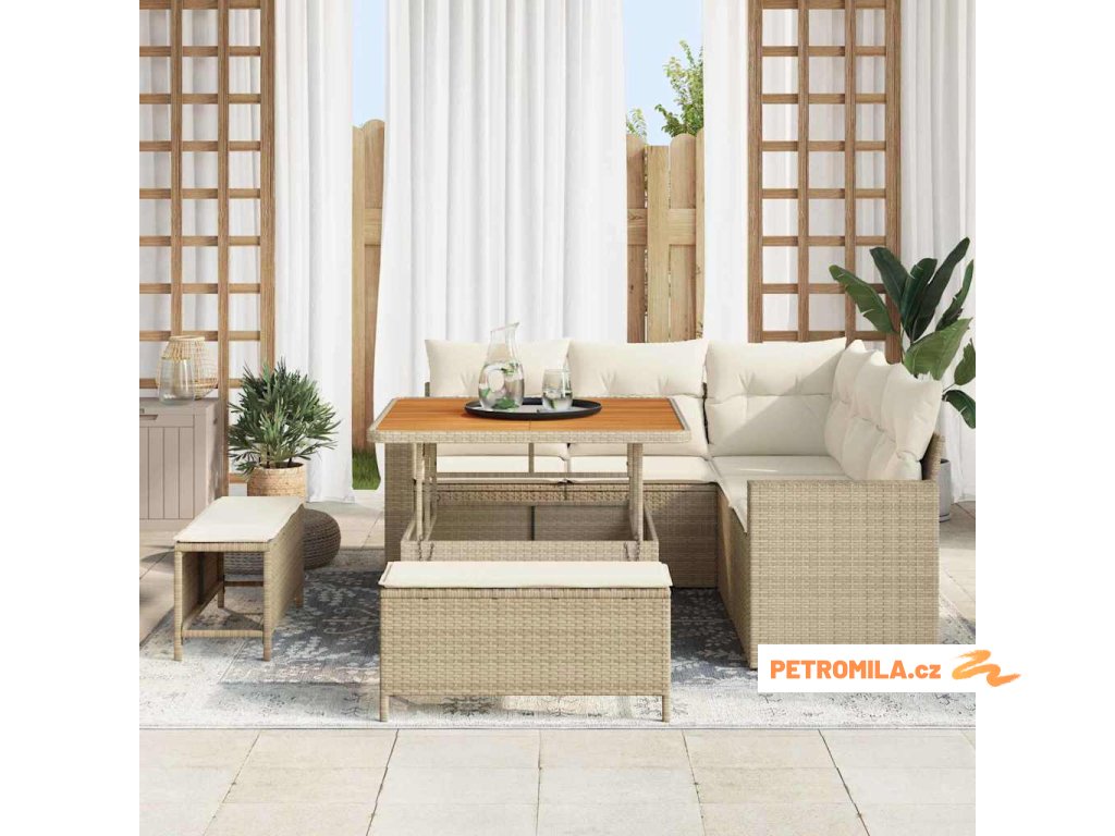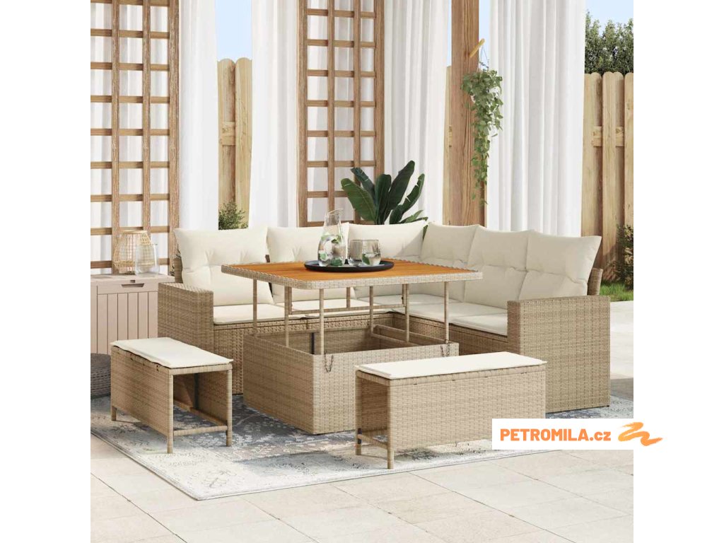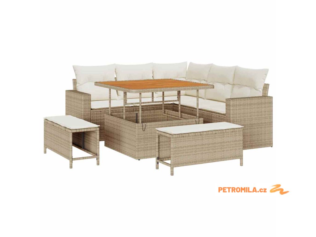 Sada zahradních pohovek s polštářem 8 pcs béžová a krémová