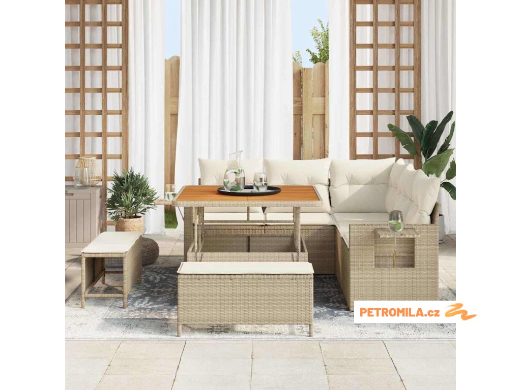 Sada zahradních pohovek s polštářem 8 pcs béžová a krémová