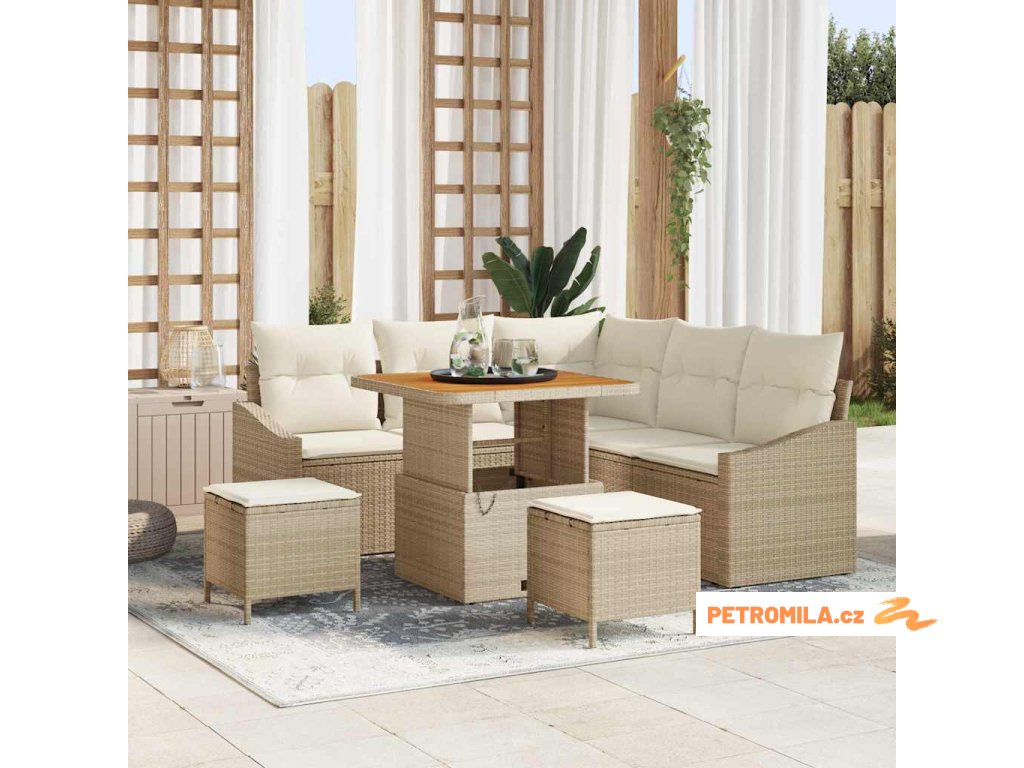 Sada zahradních pohovek s polštářem 8 pcs Béžová a krémová