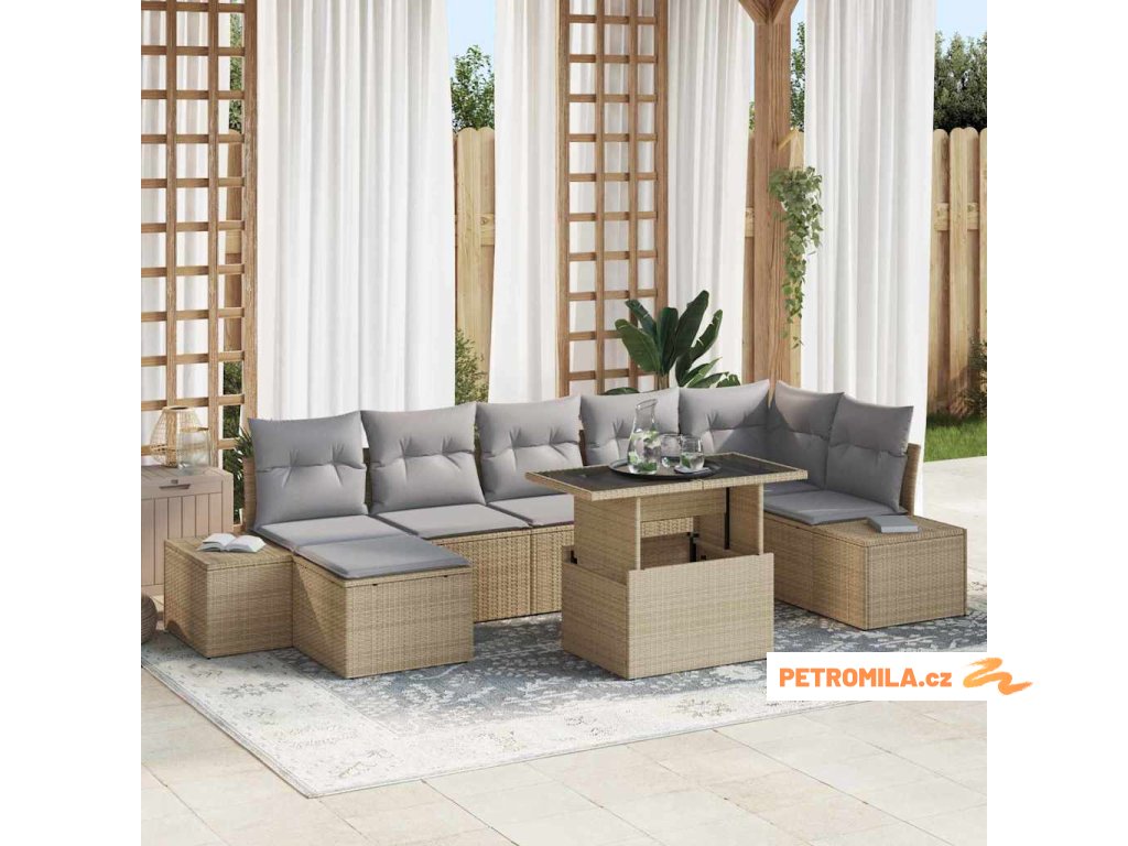 Sada zahradních pohovek s polštářem 8 pcs béžová a světle šedá