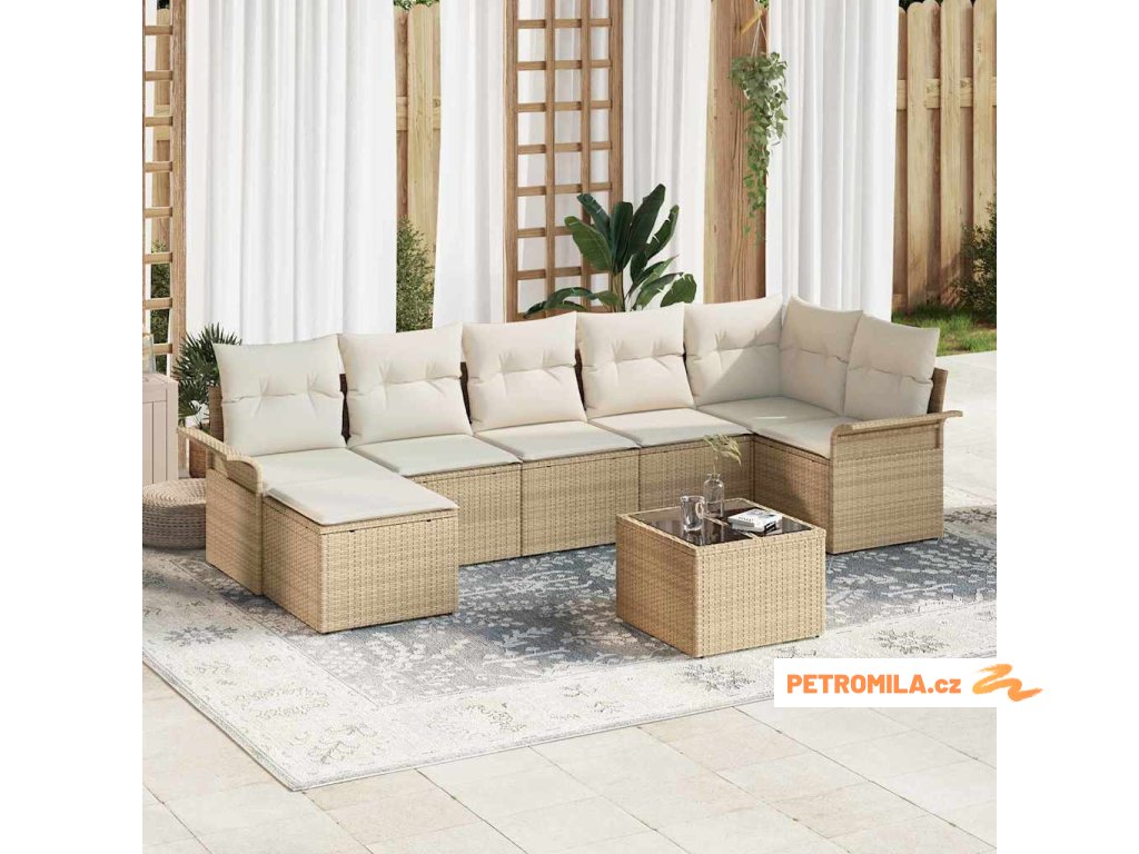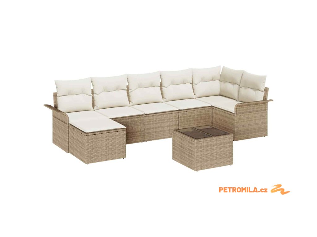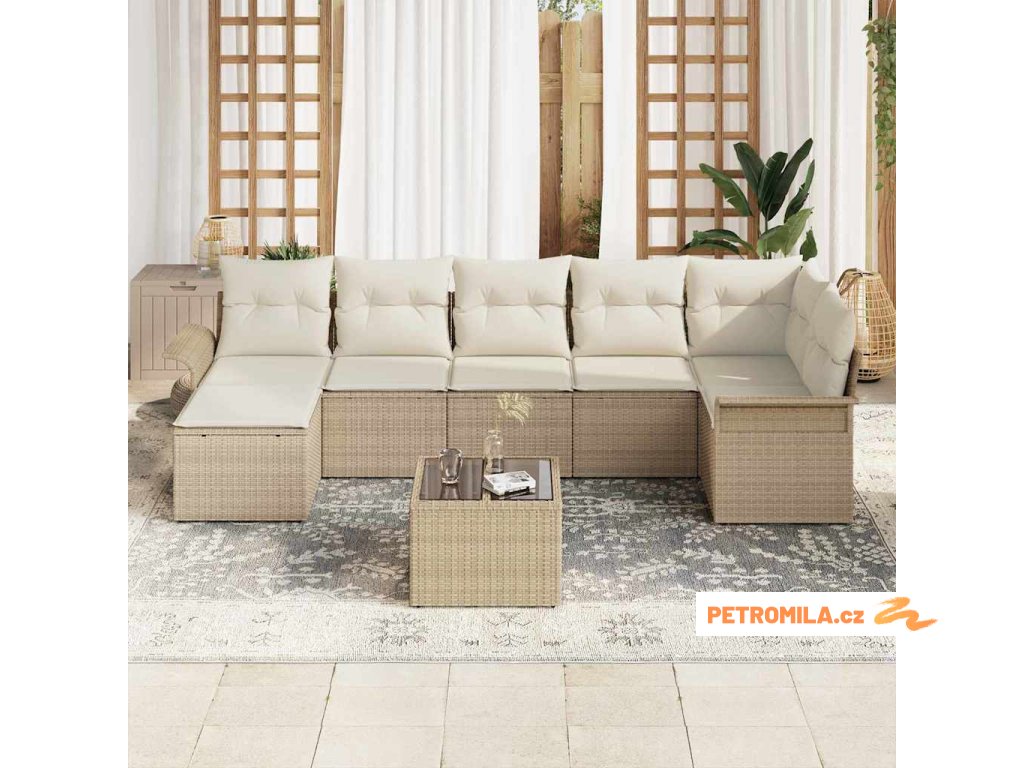 Sada zahradních pohovek s polštářem 8 pcs Béžová Poly ratan