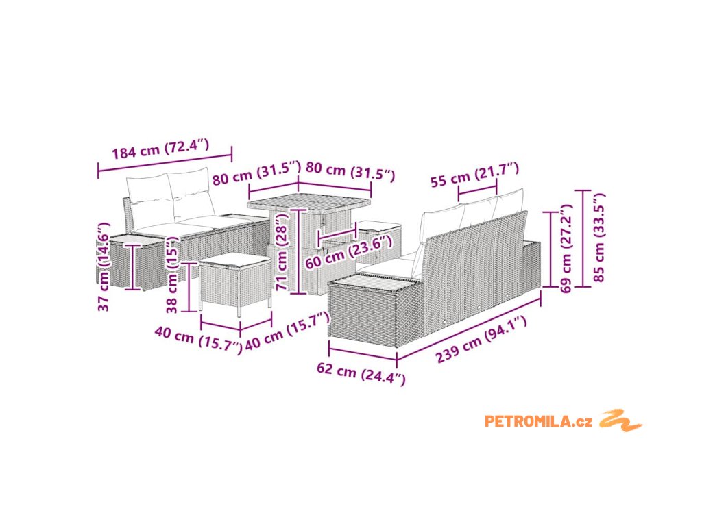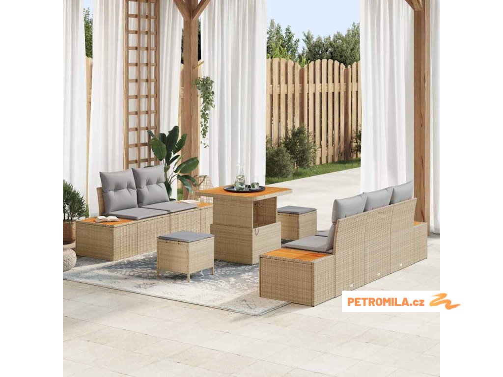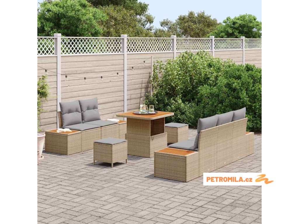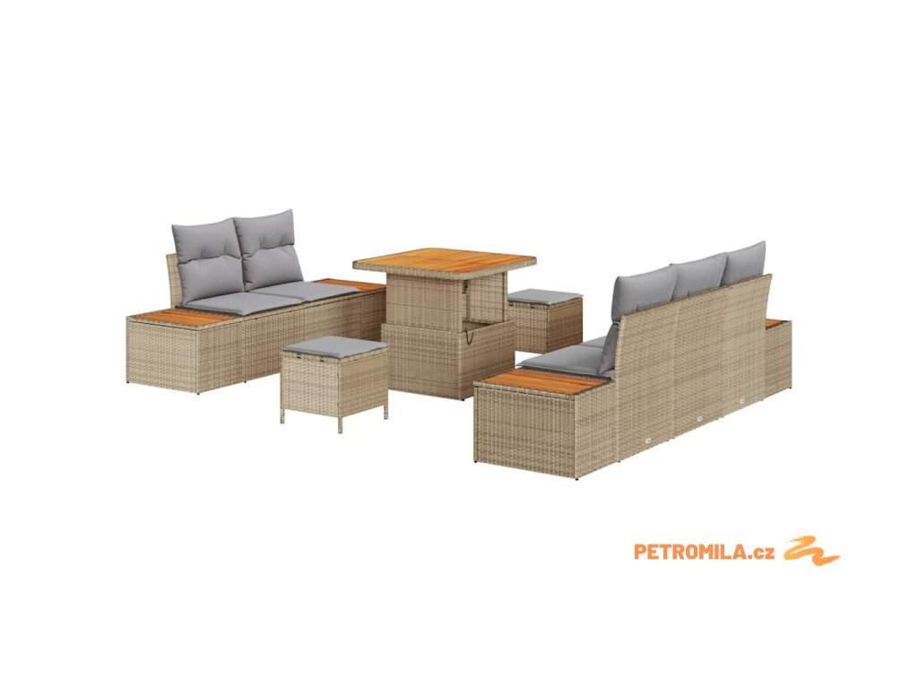 Sada zahradních pohovek s polštářem 8 pcs Béžová Poly ratan