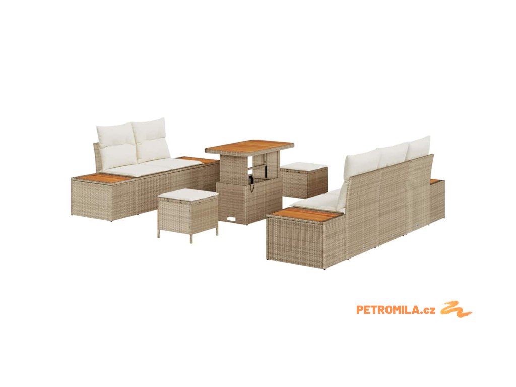 Sada zahradních pohovek s polštářem 8 pcs Béžová Poly ratan