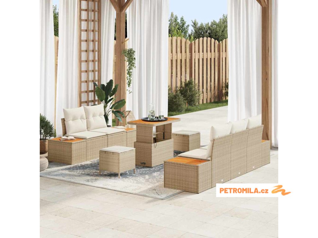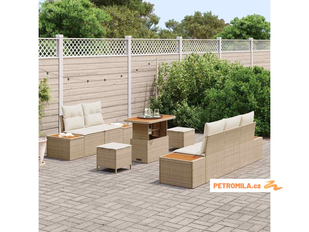 Sada zahradních pohovek s polštářem 9 pcs Béžová Poly ratan