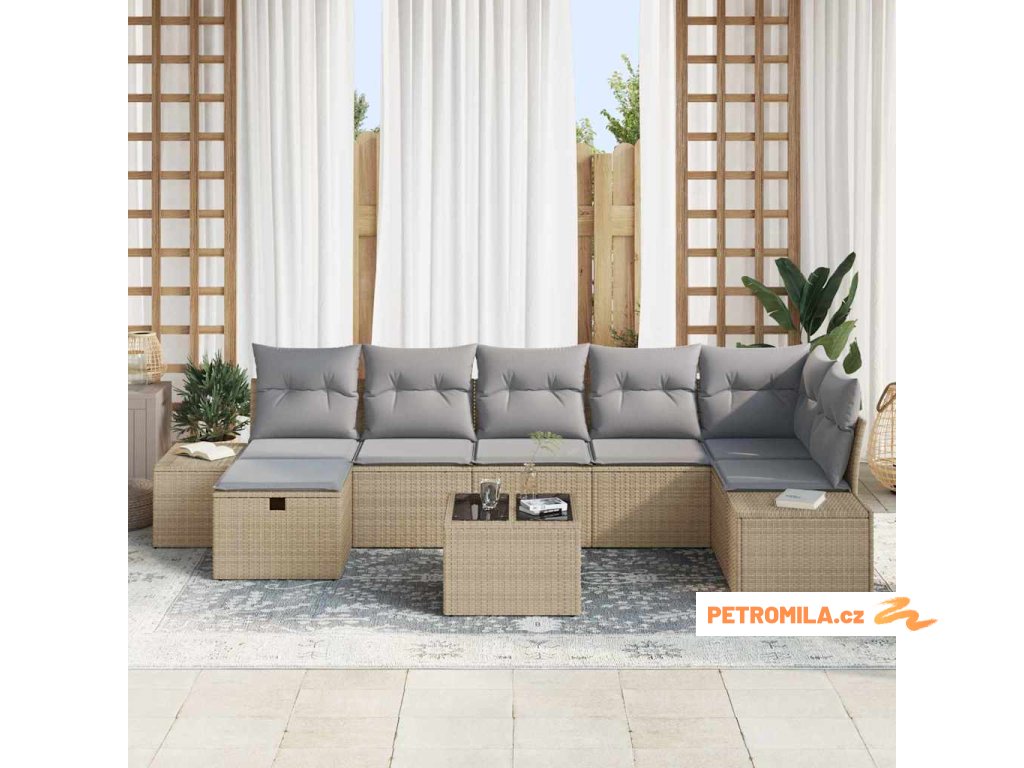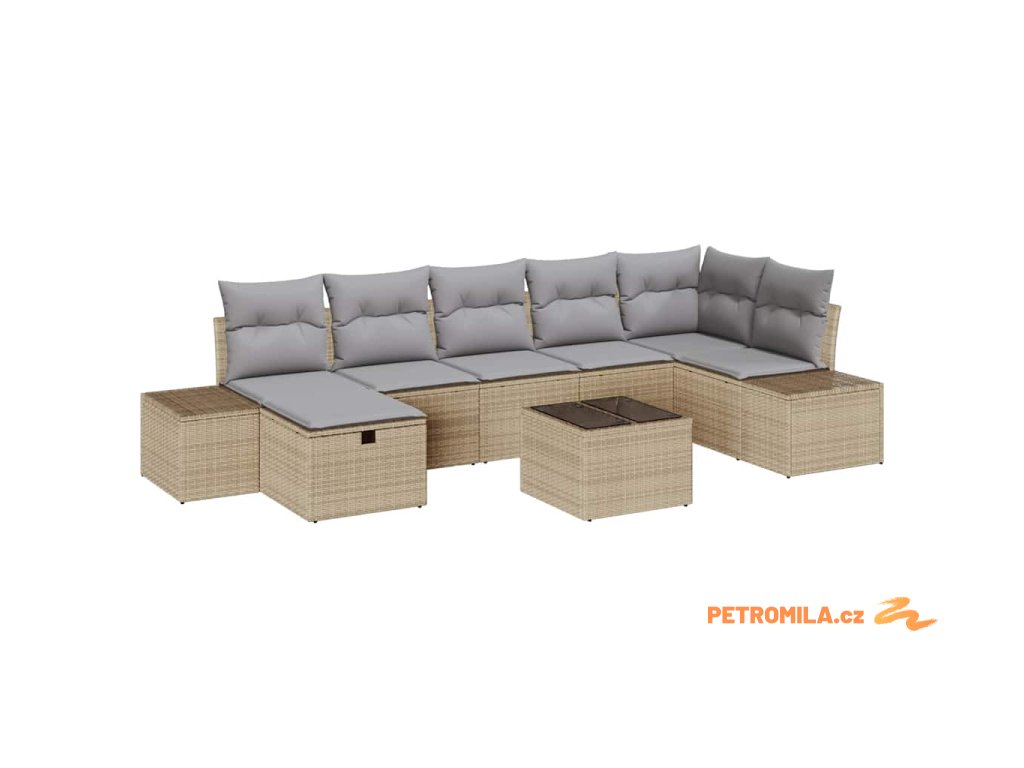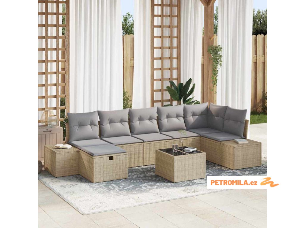 Sada zahradních pohovek s polštářem 8 pcs Béžová Poly ratan