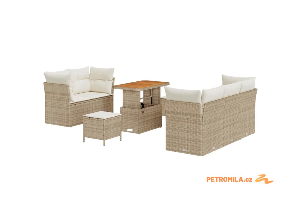 Sada zahradních pohovek s polštářem 8 pcs Béžová polyratan