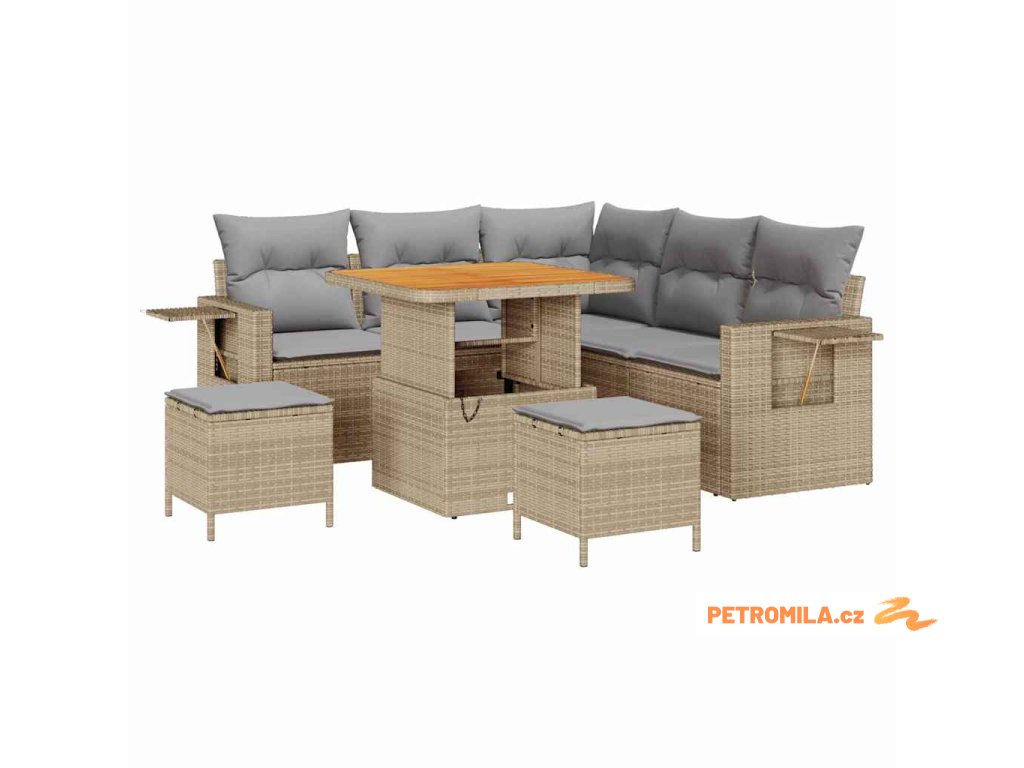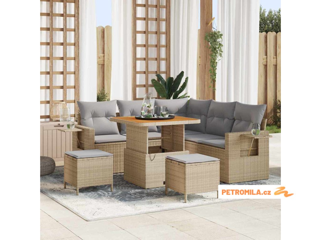 Sada zahradních pohovek s polštářem 8 pcs Béžová Poly ratan