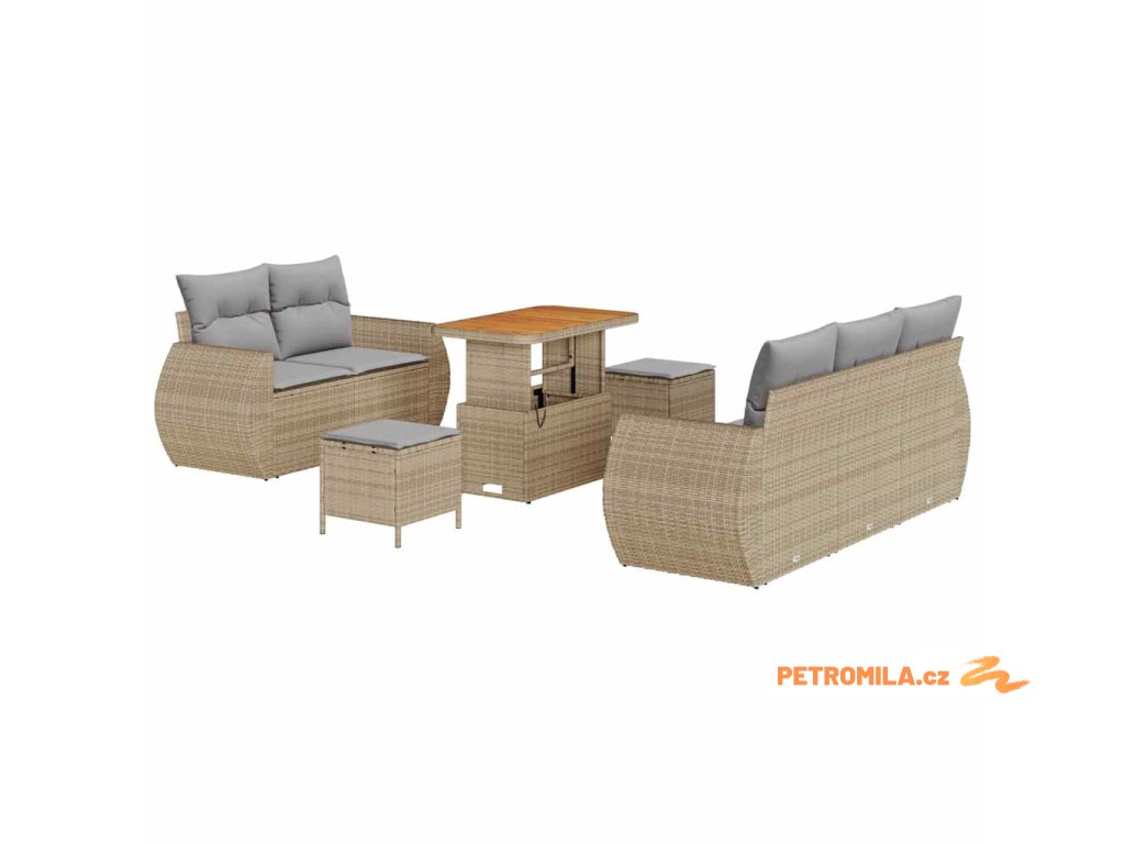 Sada zahradních pohovek s polštářem 8 pcs Béžová polyratan