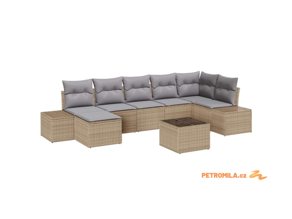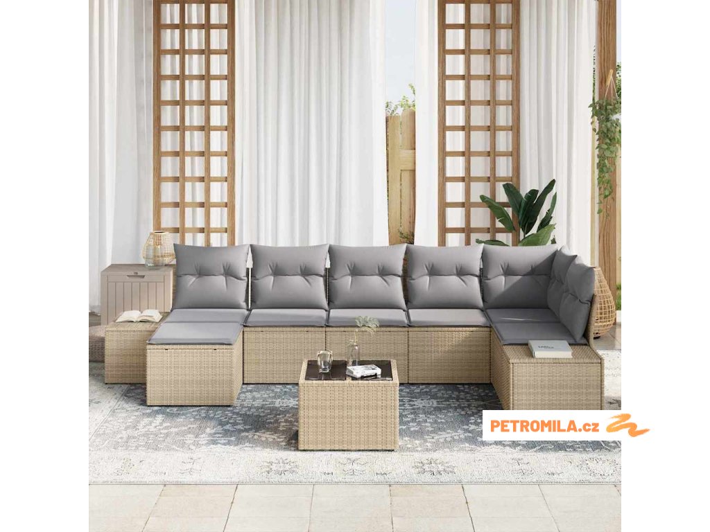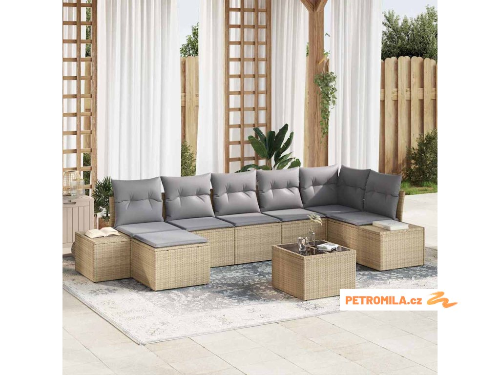 Sada zahradních pohovek s polštářem 8 pcs Béžová Poly ratan