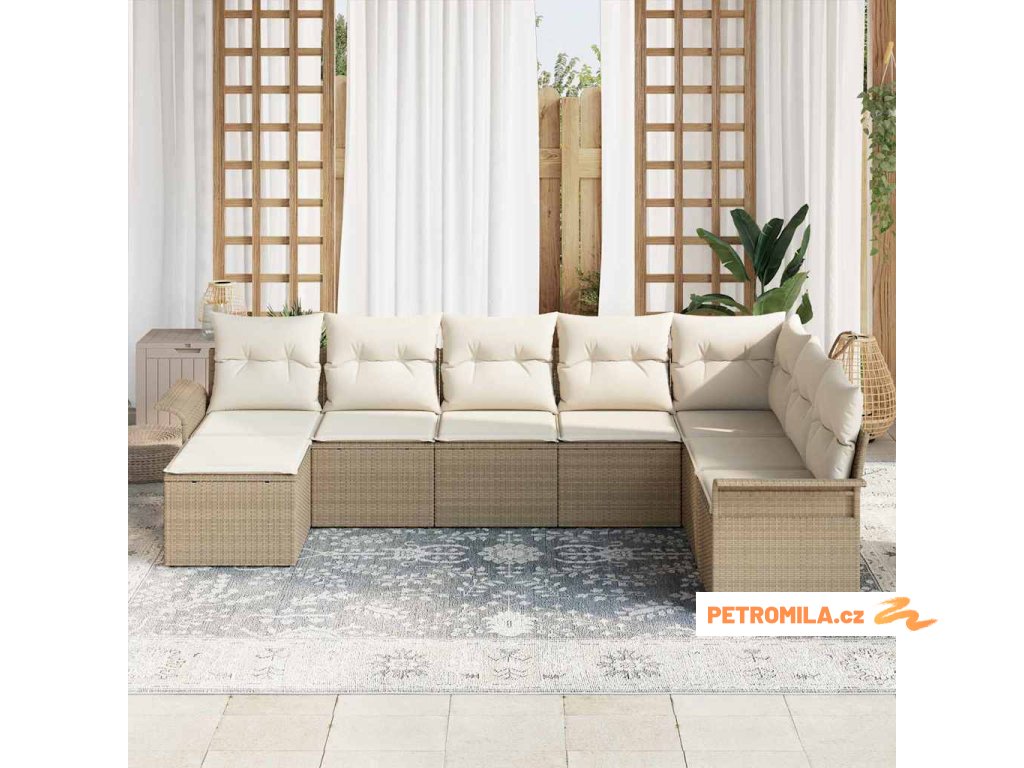 Sada zahradních pohovek s polštářem 8 pcs Béžová polyratan