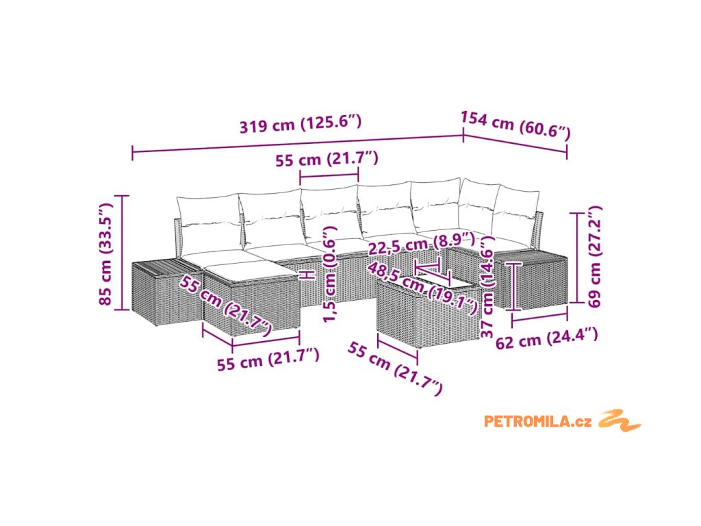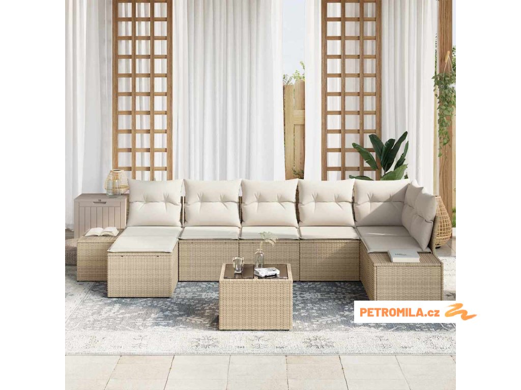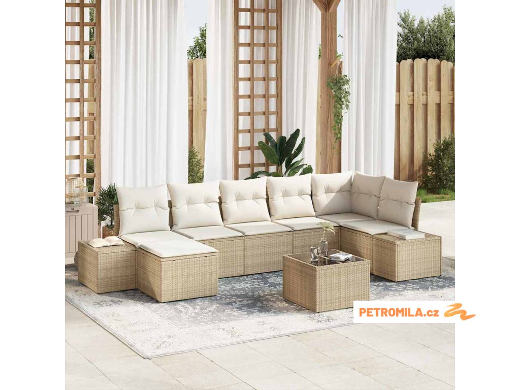Sada zahradních pohovek s polštářem 8 pcs Béžová Poly ratan