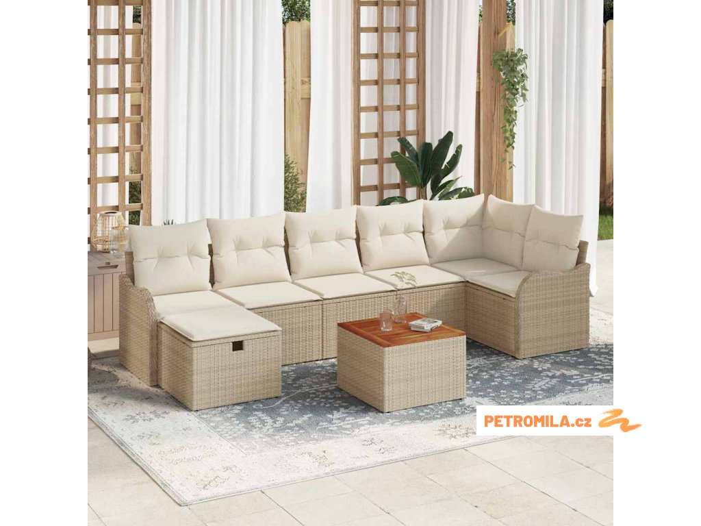 Sada zahradních pohovek s polštářem 8 pcs Béžová polyratan