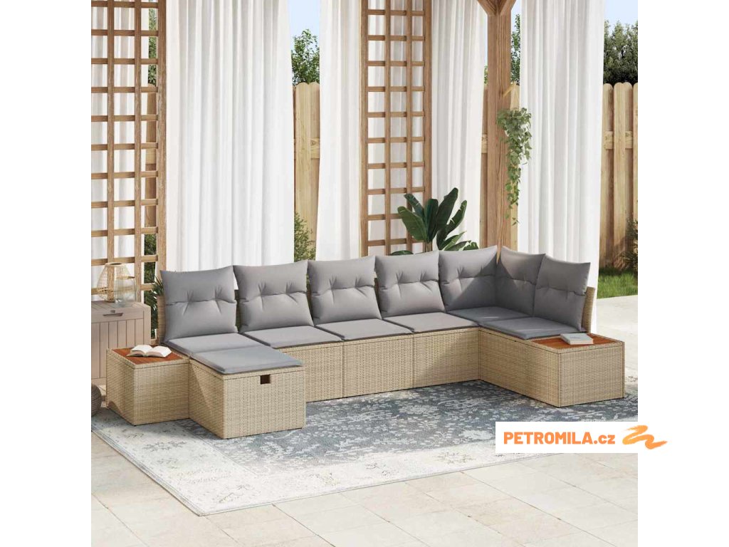 Sada zahradních pohovek s polštářem 8 pcs Béžová polyratan