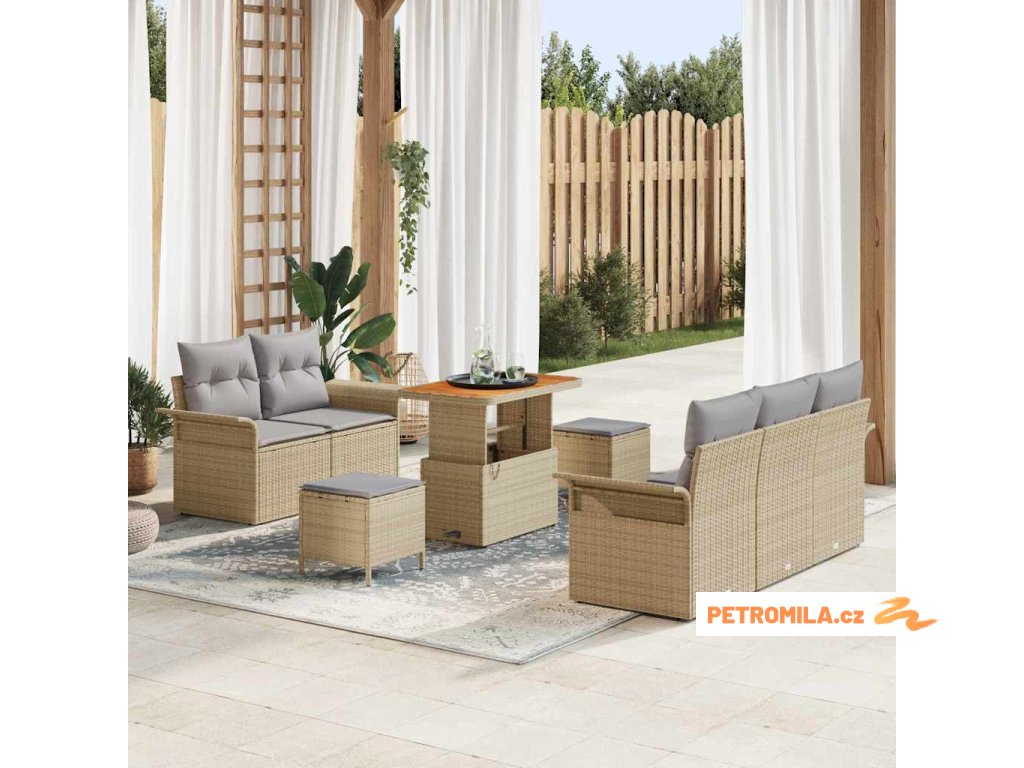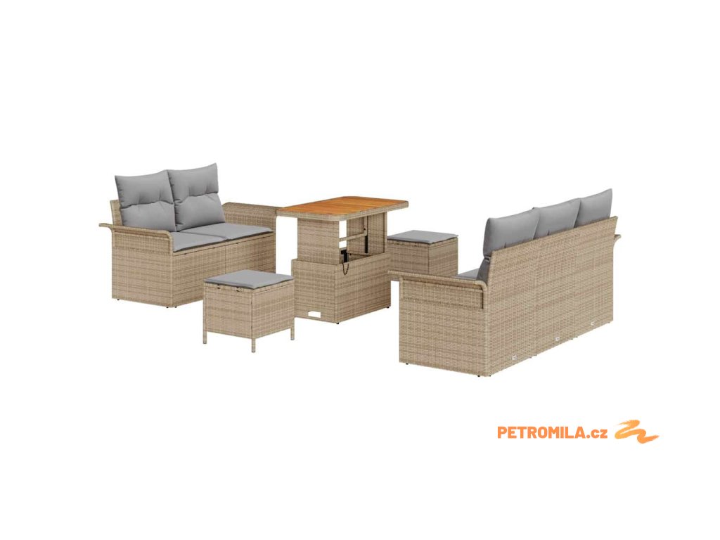 Sada zahradních pohovek s polštářem 8 pcs Béžová polyratan