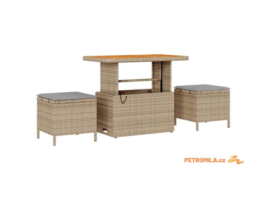 - Funkční komponenty Sada obsahuje modulární pohovku s pohodlnými polstry a nastavitelného stolíka, který se mění z výšky kávového na jídelní. Masivní akáciové dřevo dodává rustikální šarm a funkčnost.