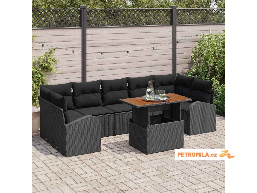 Sada zahradních pohovek s polštářem 8 pcs Černá