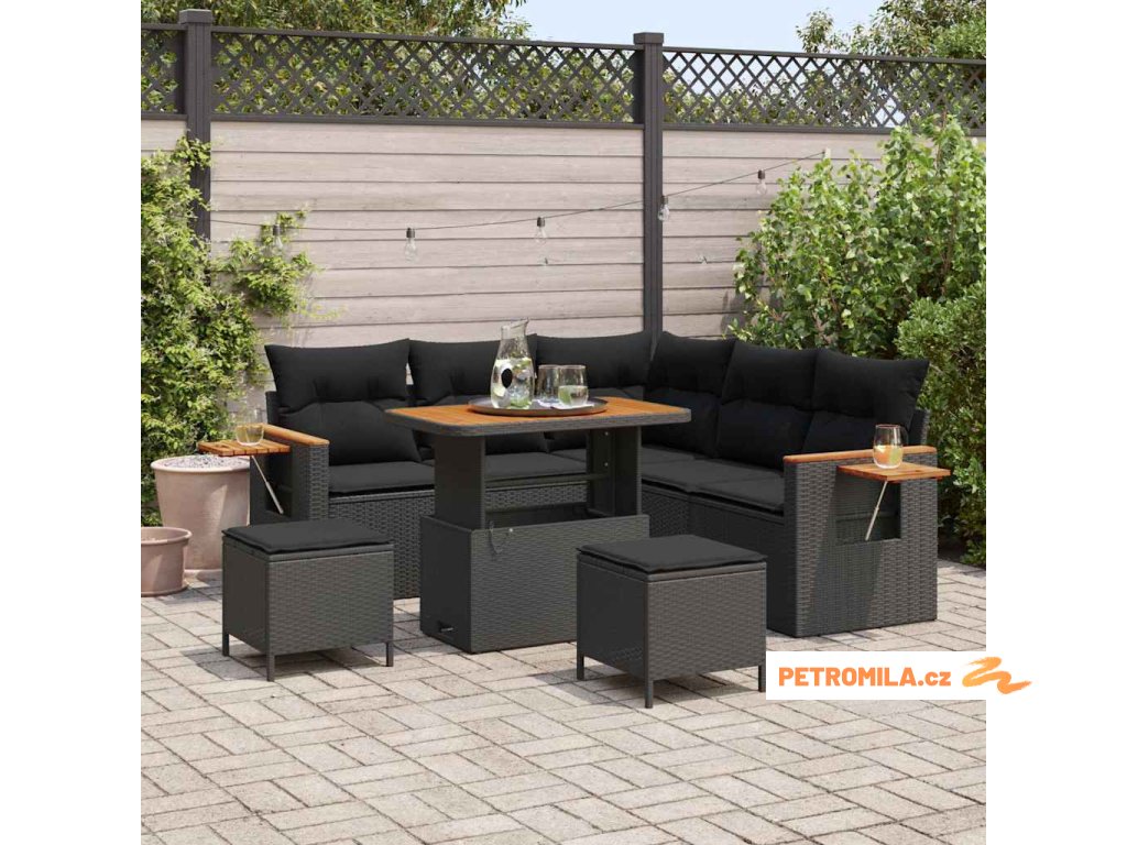 Sada zahradních pohovek s polštářem 8 pcs Černá