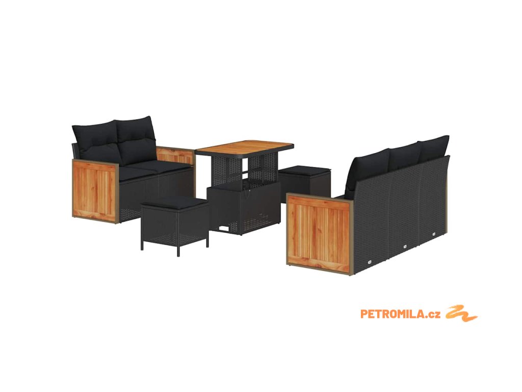 Sada zahradních pohovek s polštářem 8 pcs Černá