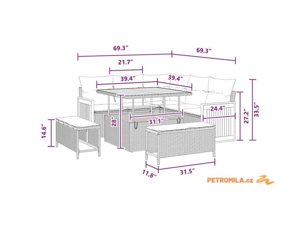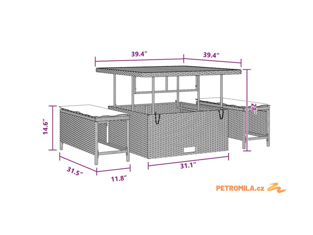 - Celkové rozměry: 100 x 100 x 71 cm (D x Š x V)
