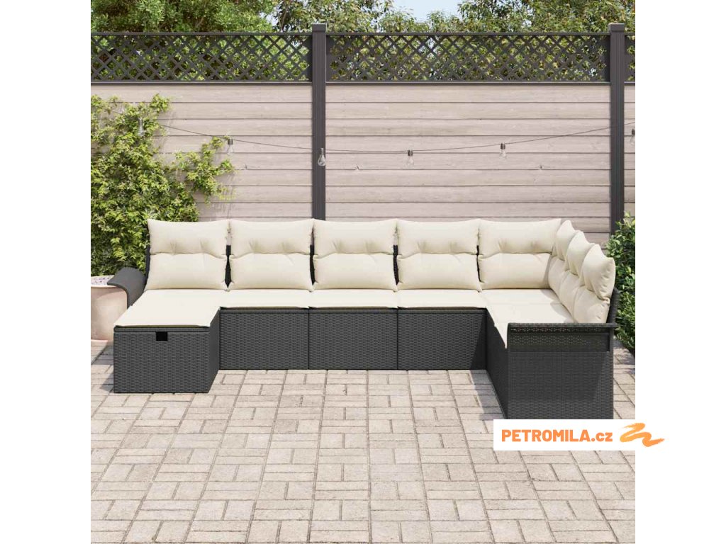 Sada zahradních pohovek s polštářem 8 pcs Černá a krémová