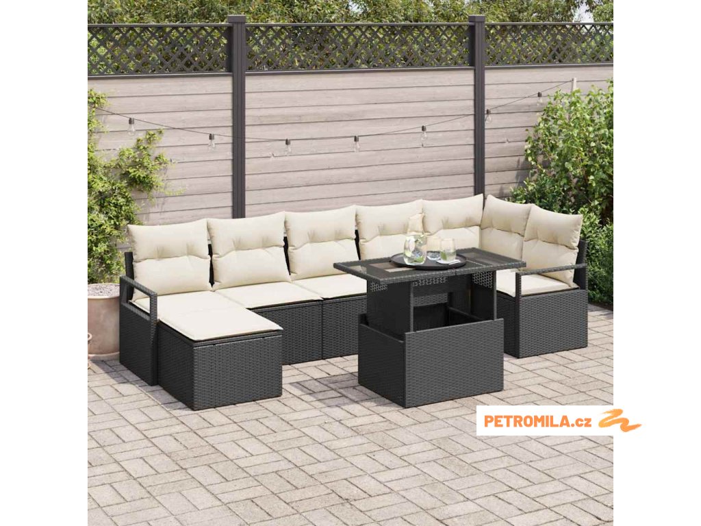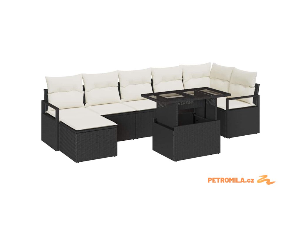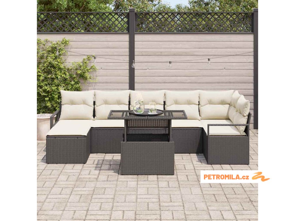 Sada zahradních pohovek s polštářem 8 pcs Černá a krémová