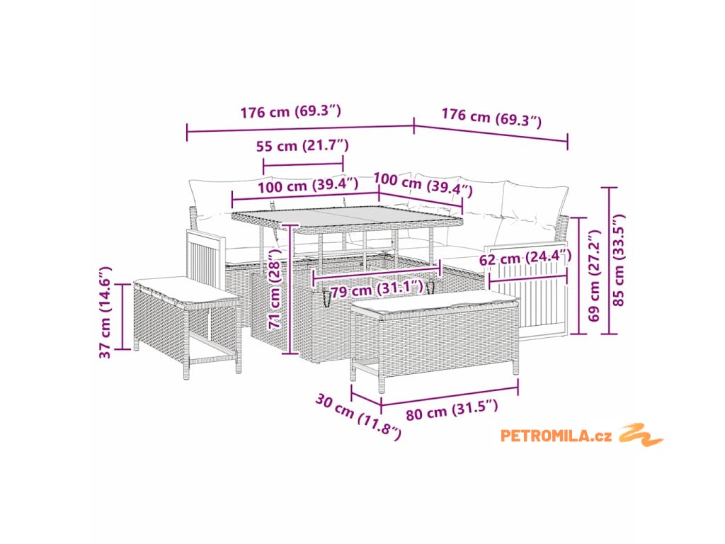 - Celkové rozměry: 100 x 100 x 71 cm (D x Š x V)