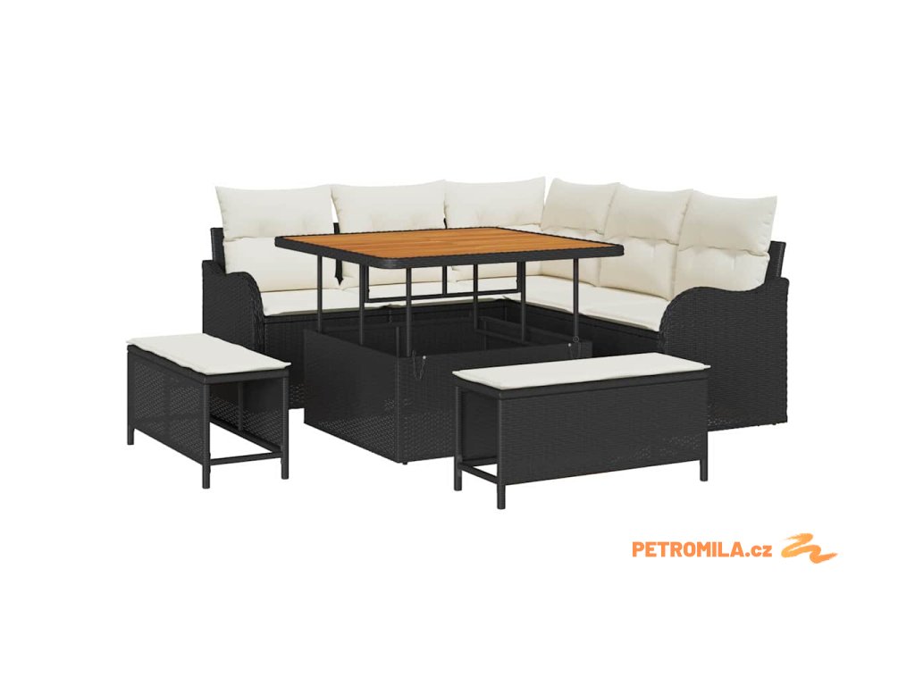 Sada zahradních pohovek s polštářem 8 pcs Černá a krémová