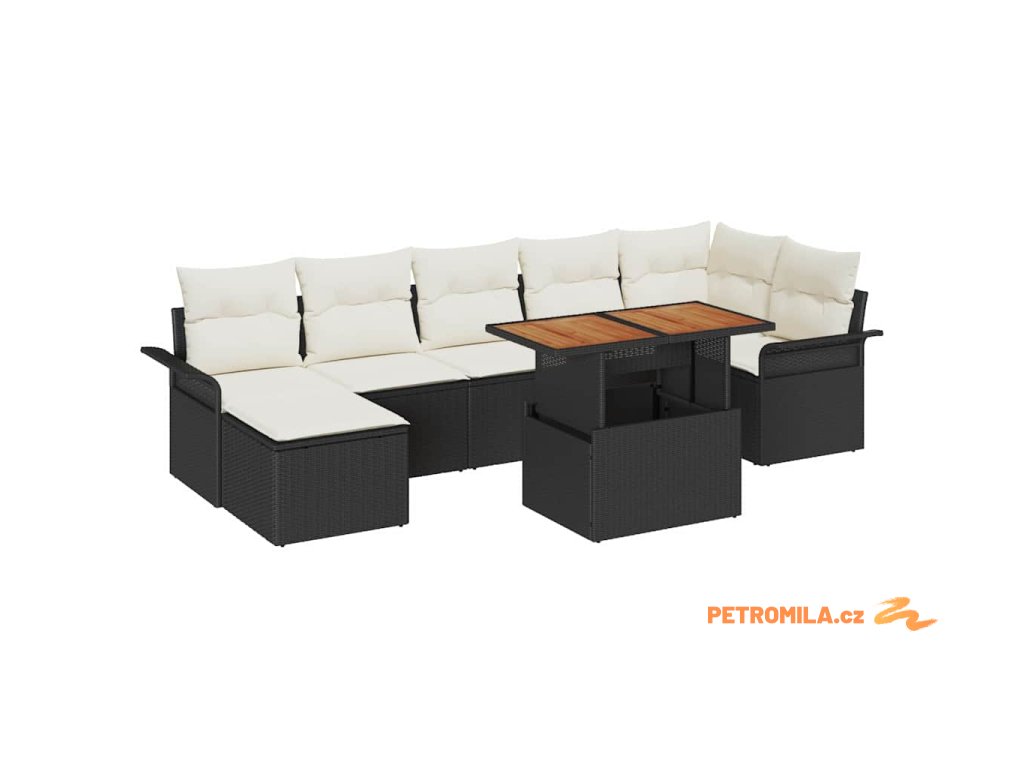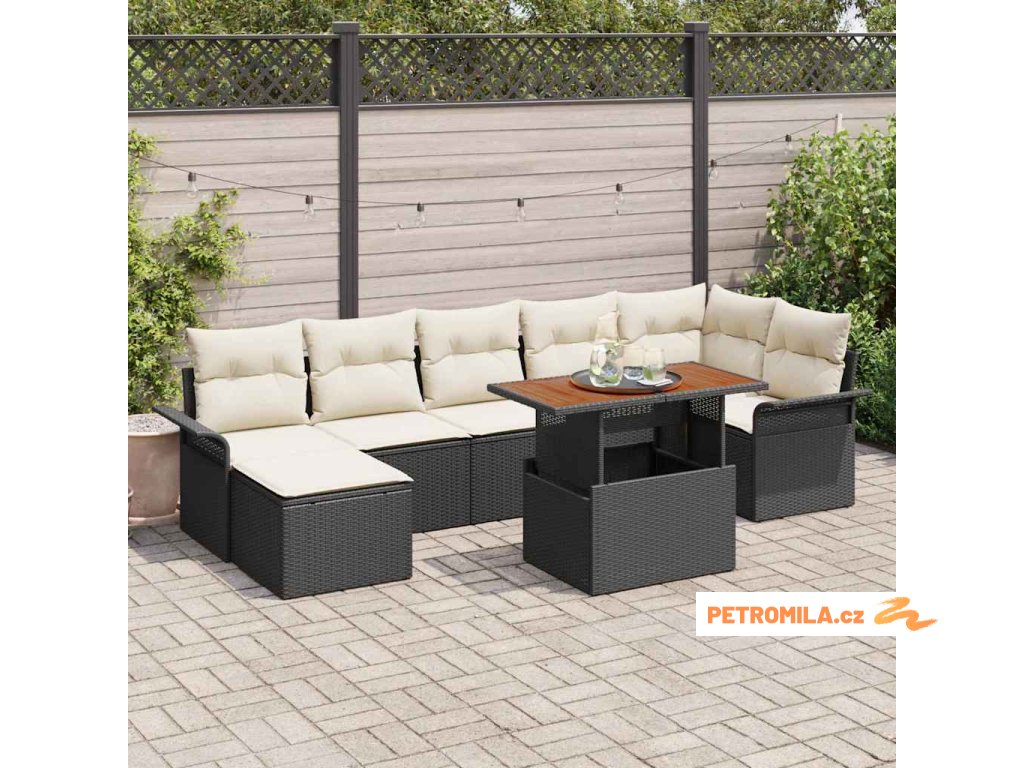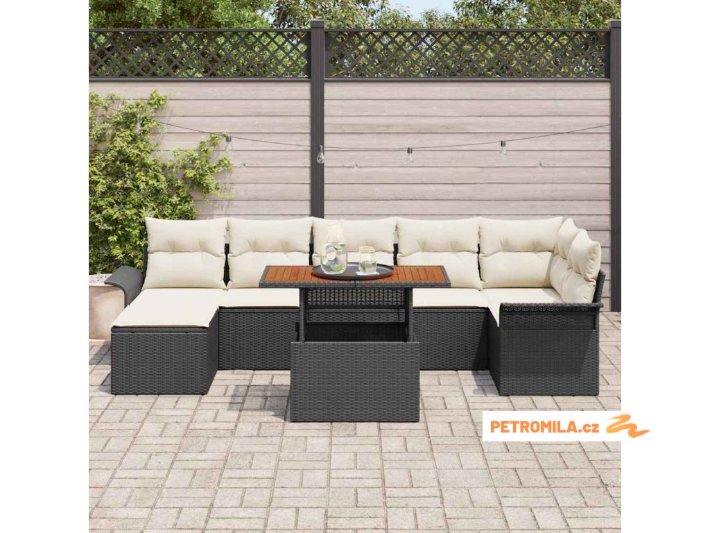 Sada zahradních pohovek s polštářem 8 pcs Černá a krémová