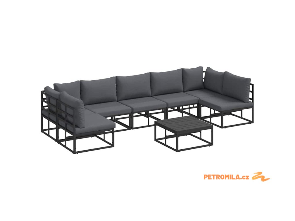 Sada zahradních pohovek s polštářem 8 pcs Černá Hliník