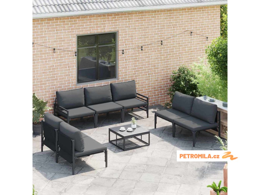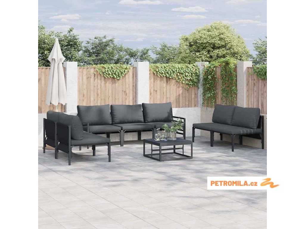 Sada zahradních pohovek s polštářem 8 pcs Černá Ocel