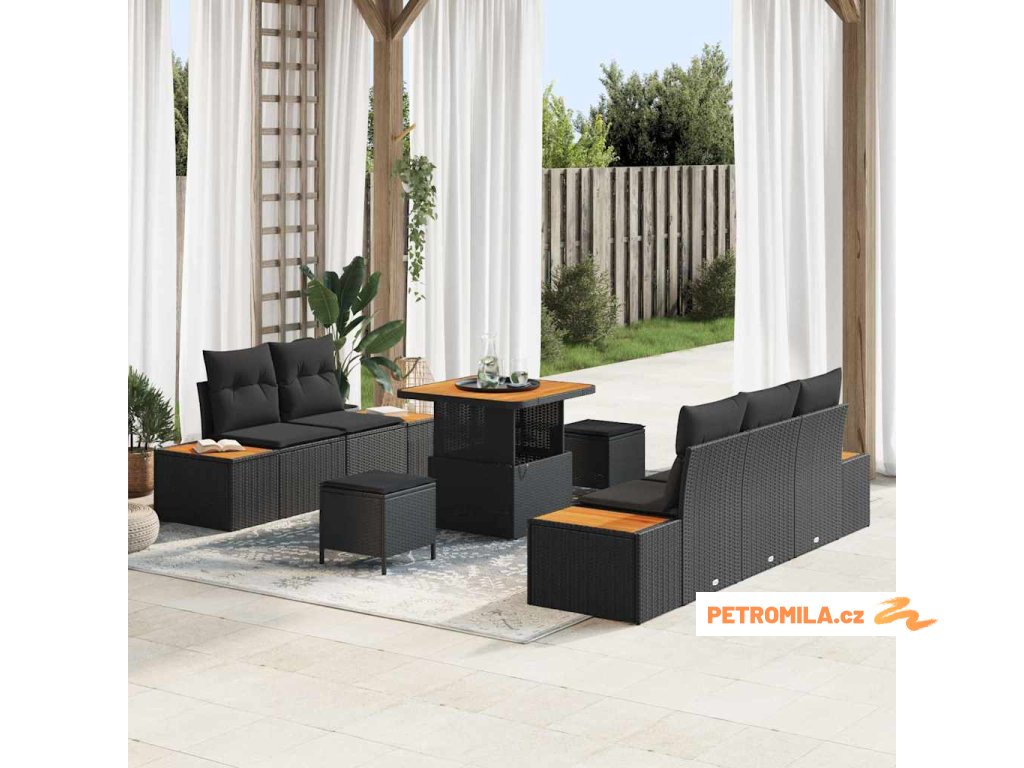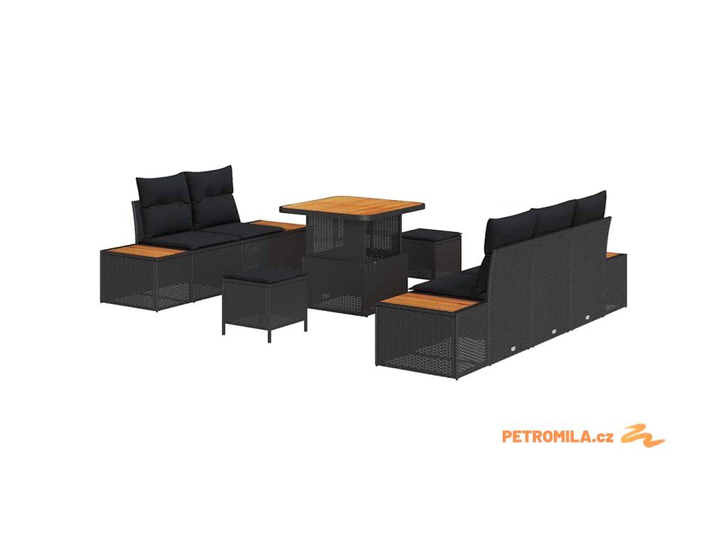 Sada zahradních pohovek 9 pcs Černá polyratan