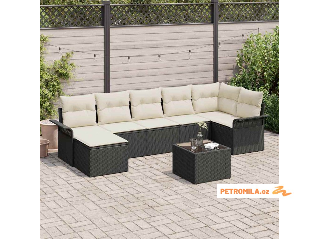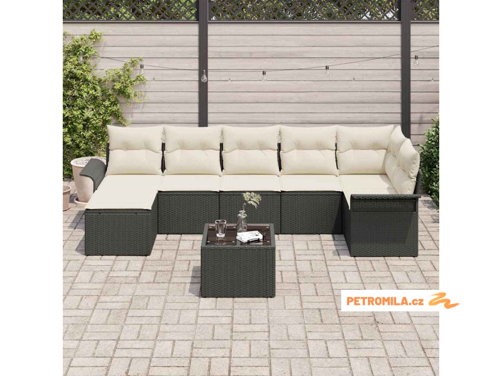 Sada zahradních pohovek s polštářem 8 pcs Černá Poly ratan