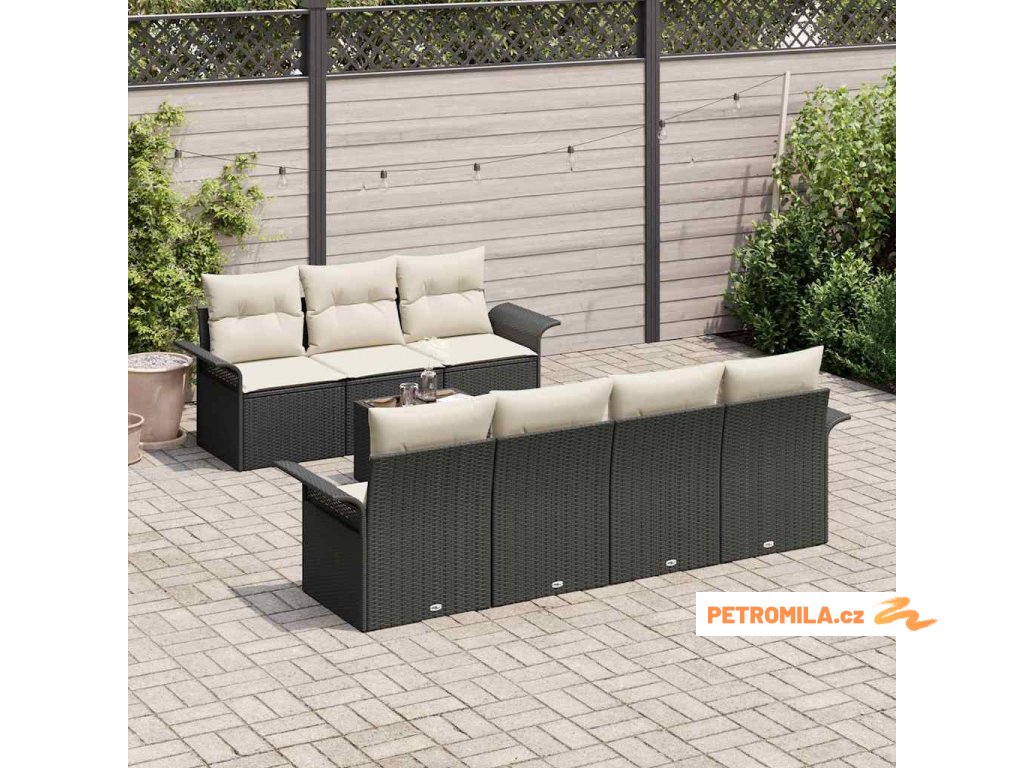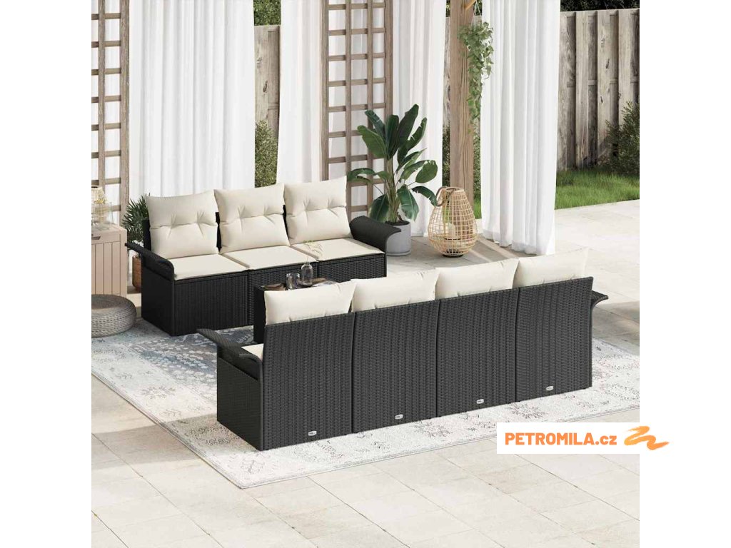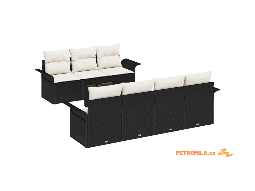 Sada zahradních pohovek s polštářem 8 pcs Černá polyratan