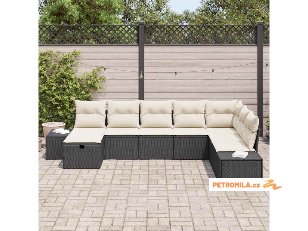 Sada zahradních pohovek s polštářem 8 pcs Černá polyratan