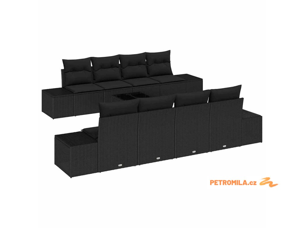 Sada zahradních pohovek s polštářem 8 pcs Černá polyratan