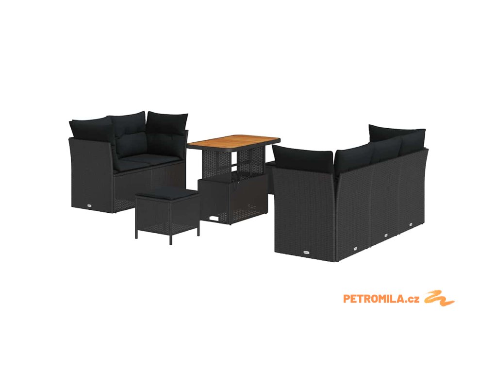 11dílná zahradní sedací souprava s poduškami černá polyratan