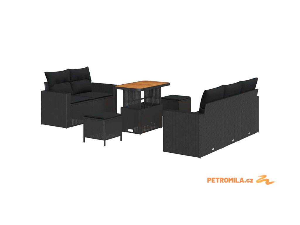 Sada zahradních pohovek s polštářem 8 pcs Černá polyratan