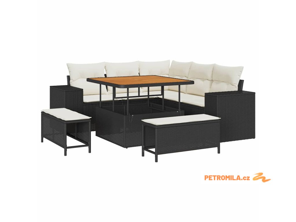 Sada zahradních pohovek s polštářem 8 pcs Černá polyratan