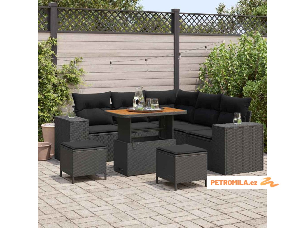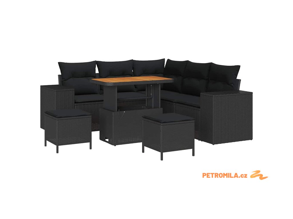 Sada zahradních pohovek 9 pcs Černá polyratan