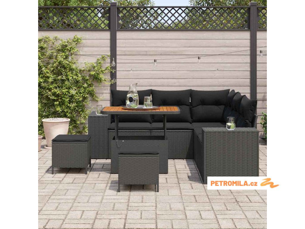 Sada zahradních pohovek s polštářem 8 pcs Černá polyratan