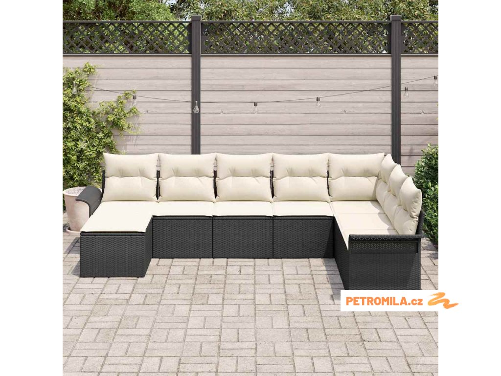 Sada zahradních pohovek s polštářem 8 pcs Černá polyratan