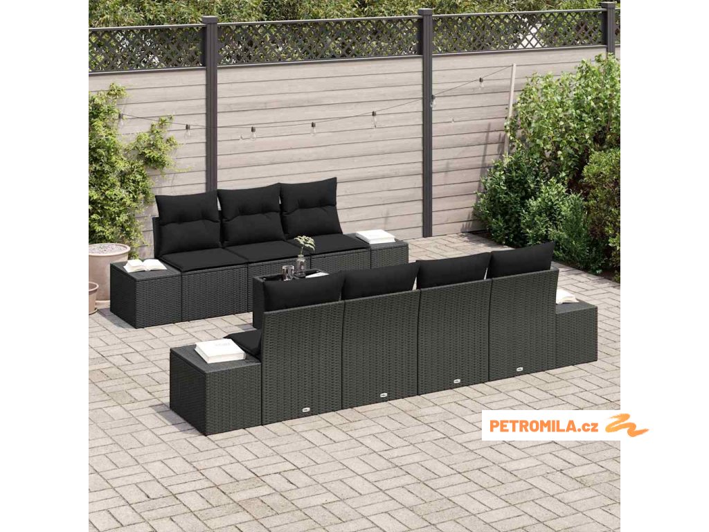 Sada zahradních pohovek s polštářem 8 pcs Černá polyratan