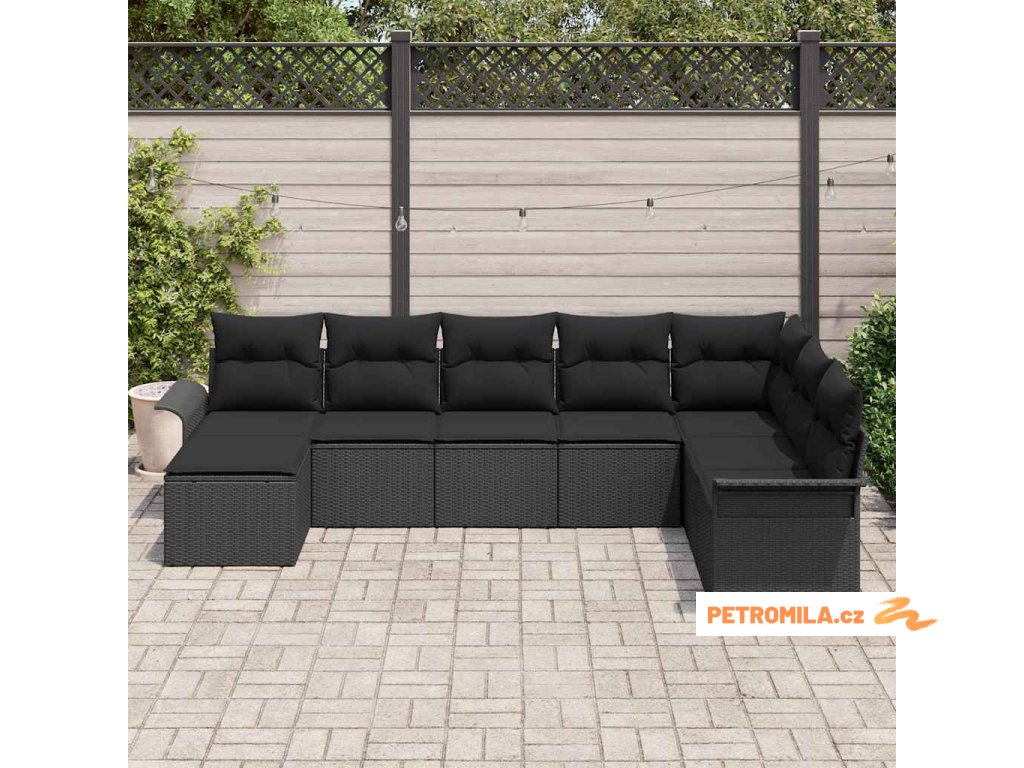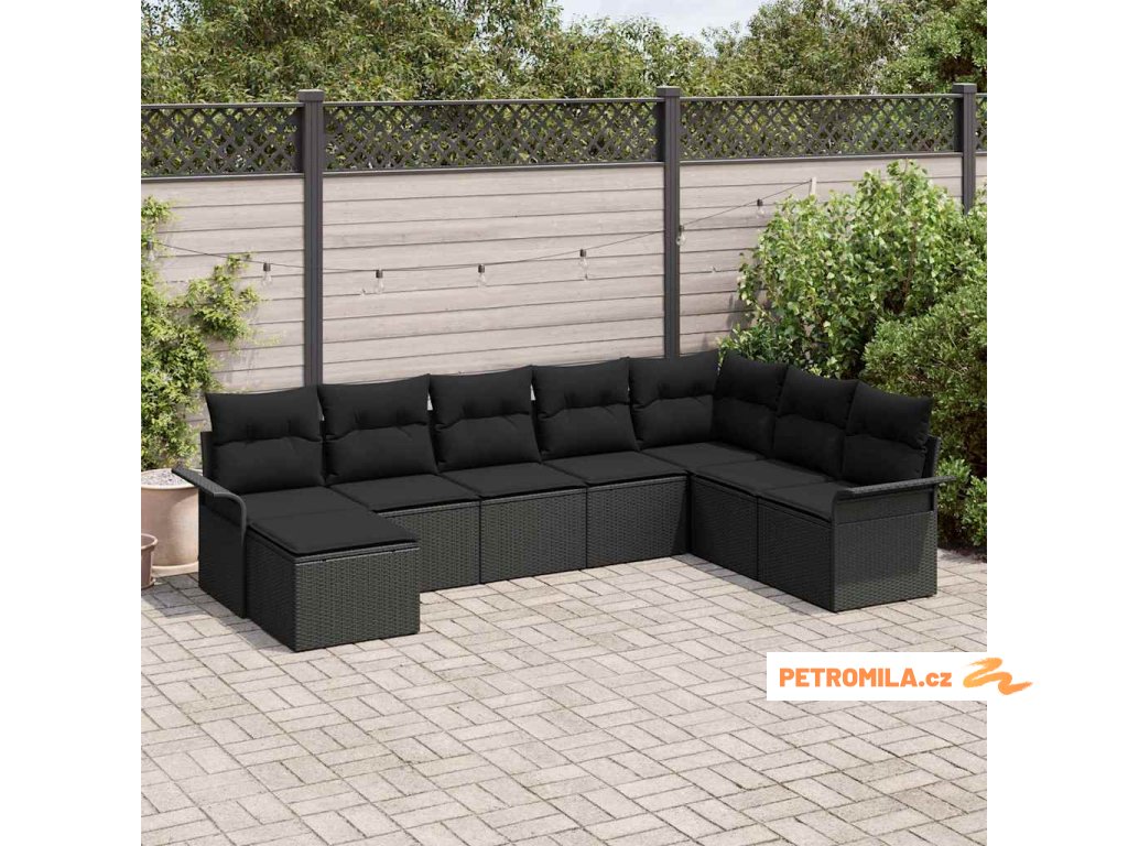 Sada zahradních pohovek s polštářem 8 pcs Černá polyratan